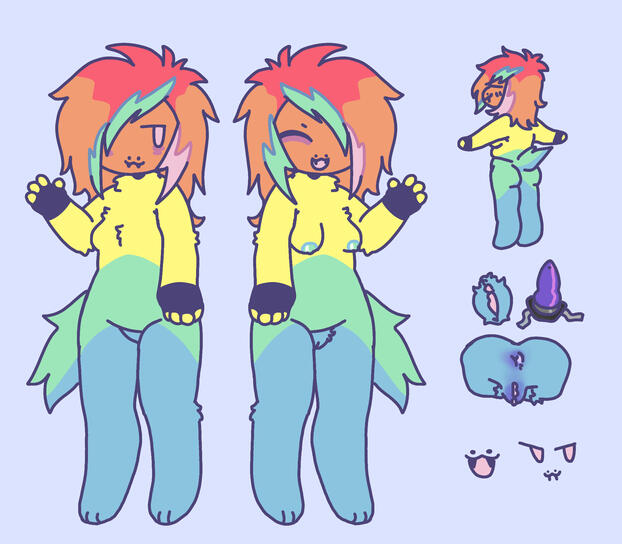 shes a rainbow puppy! raine works retail part-time and hates every second. she likes gaming, listening to music, drawing, collecting various knick-knacks, and cooking. she loves spending time with her boyfriend stormi!she experiences fibromyalgia and chronic pain in the shoulders, neck, and back, which can be anywhere from mild to severe at a given day. in addition to her compressing gloves, she often wears ankle and knee braces.raine is very outgoing and extroverted! being a puppy, she loves the outdoors, even though she often struggles with movement and exercise. stormi is always there to be a gentle helping hand on good and bad pain days!
